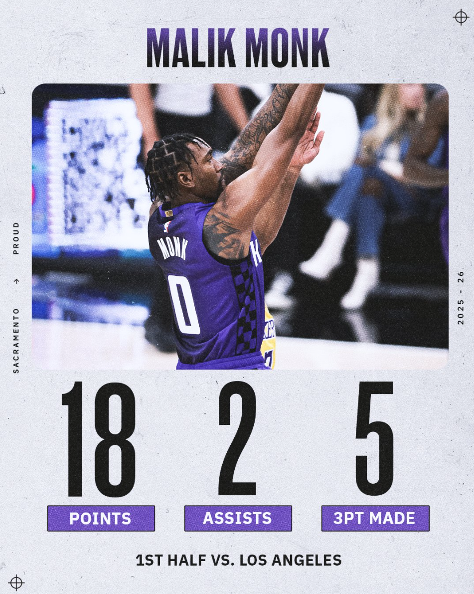 蒙克32分钟,15中9,三分9中7,拿到26分(赛季新高)8助攻1篮板1抢断,命中率60%,三分命中率77.8%。